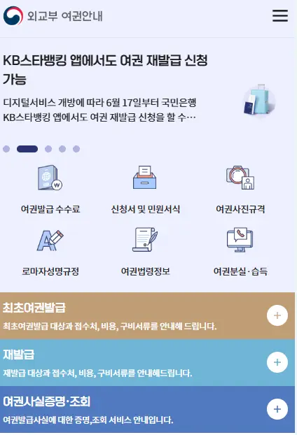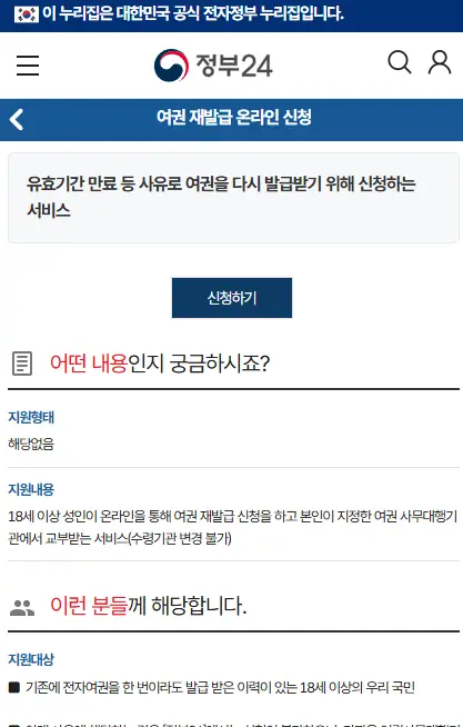 여권 갱신 및 여권 재발급은 위에 이미지 클릭해서 신청이 가능합니다.