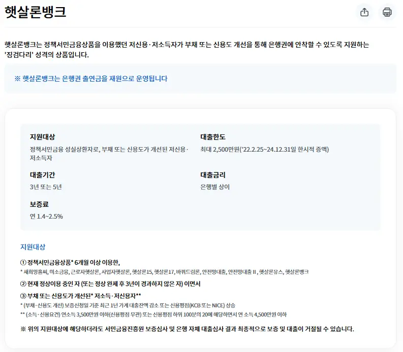 - 햇살론 유스/새희망홀씨/미소금융 6개월 이상 정상 이용